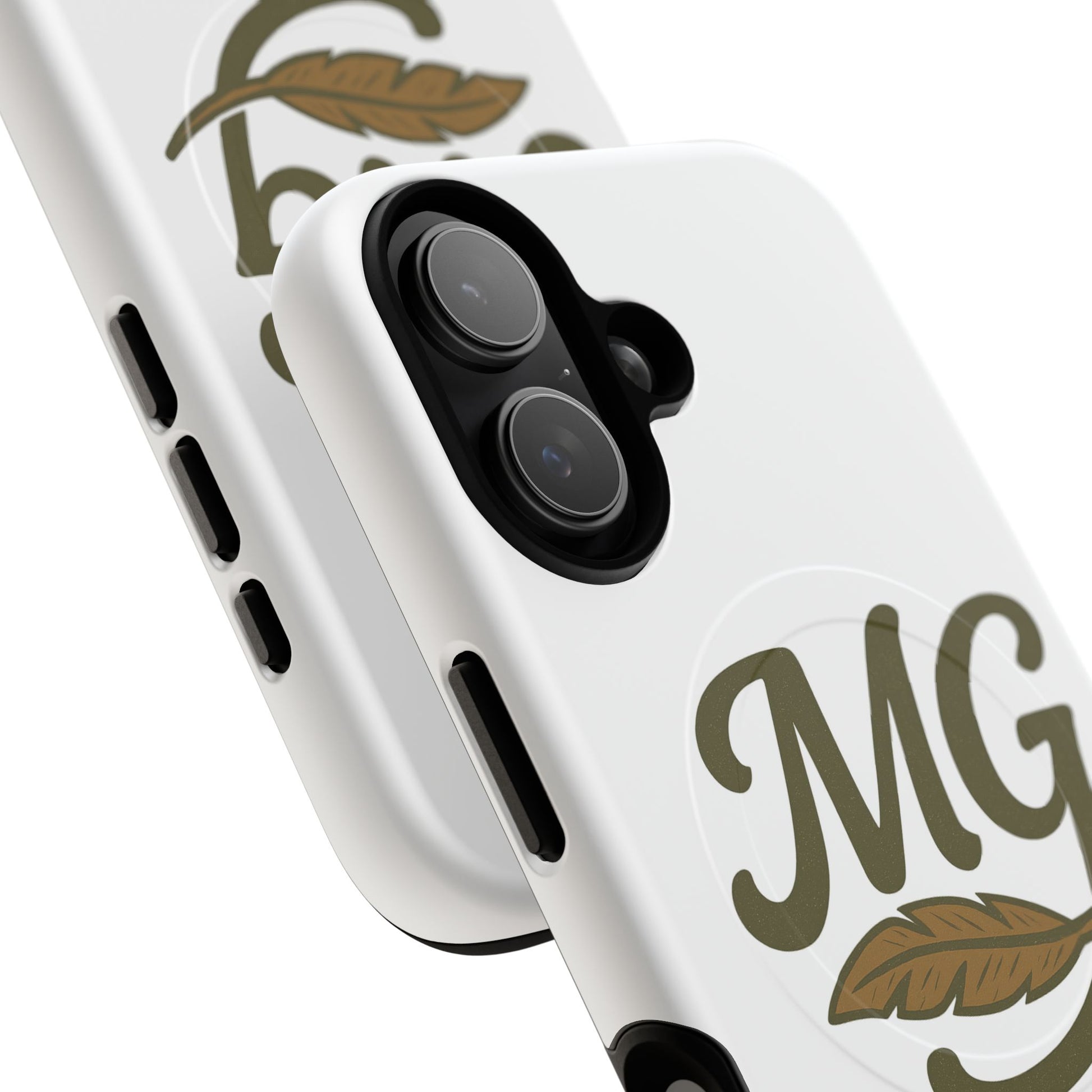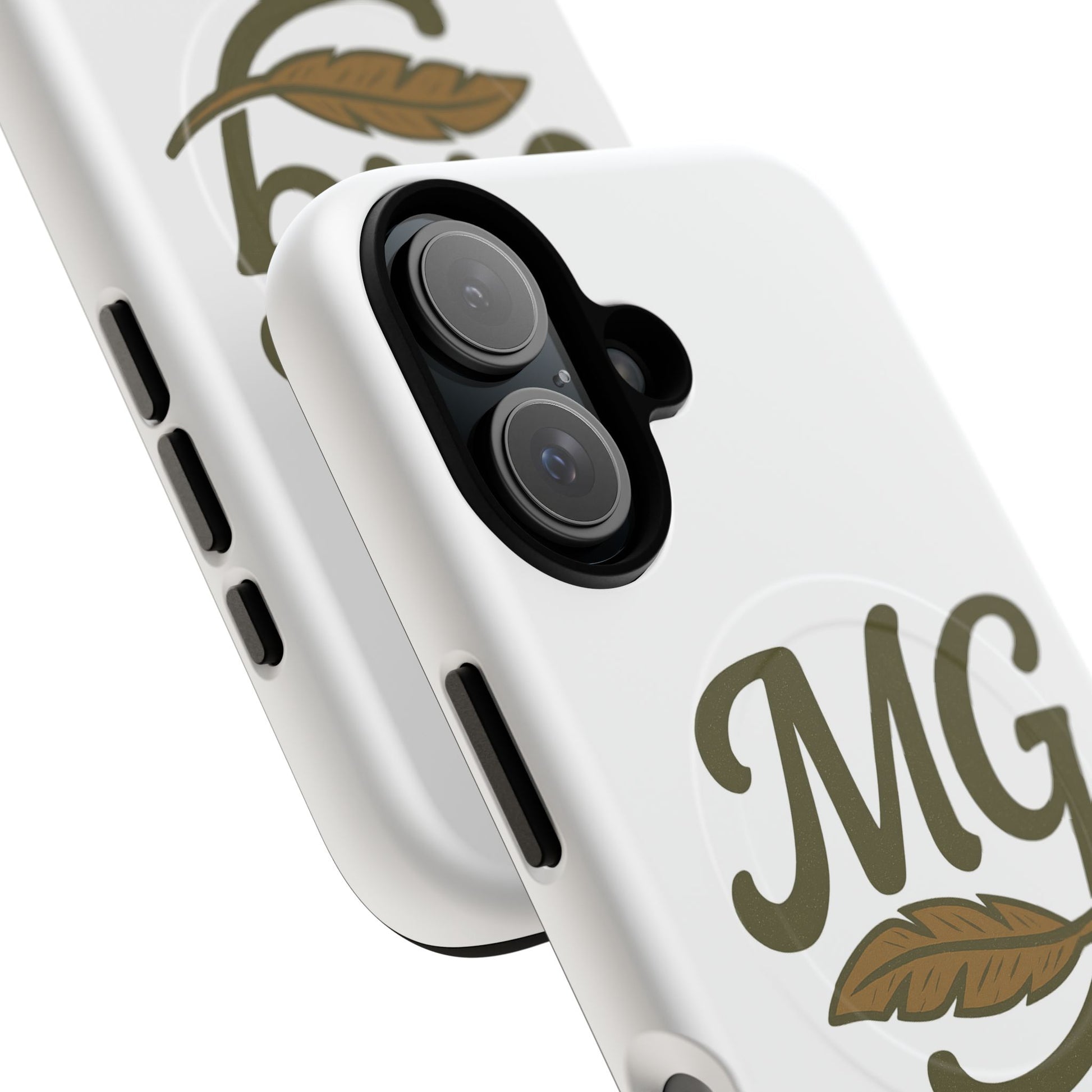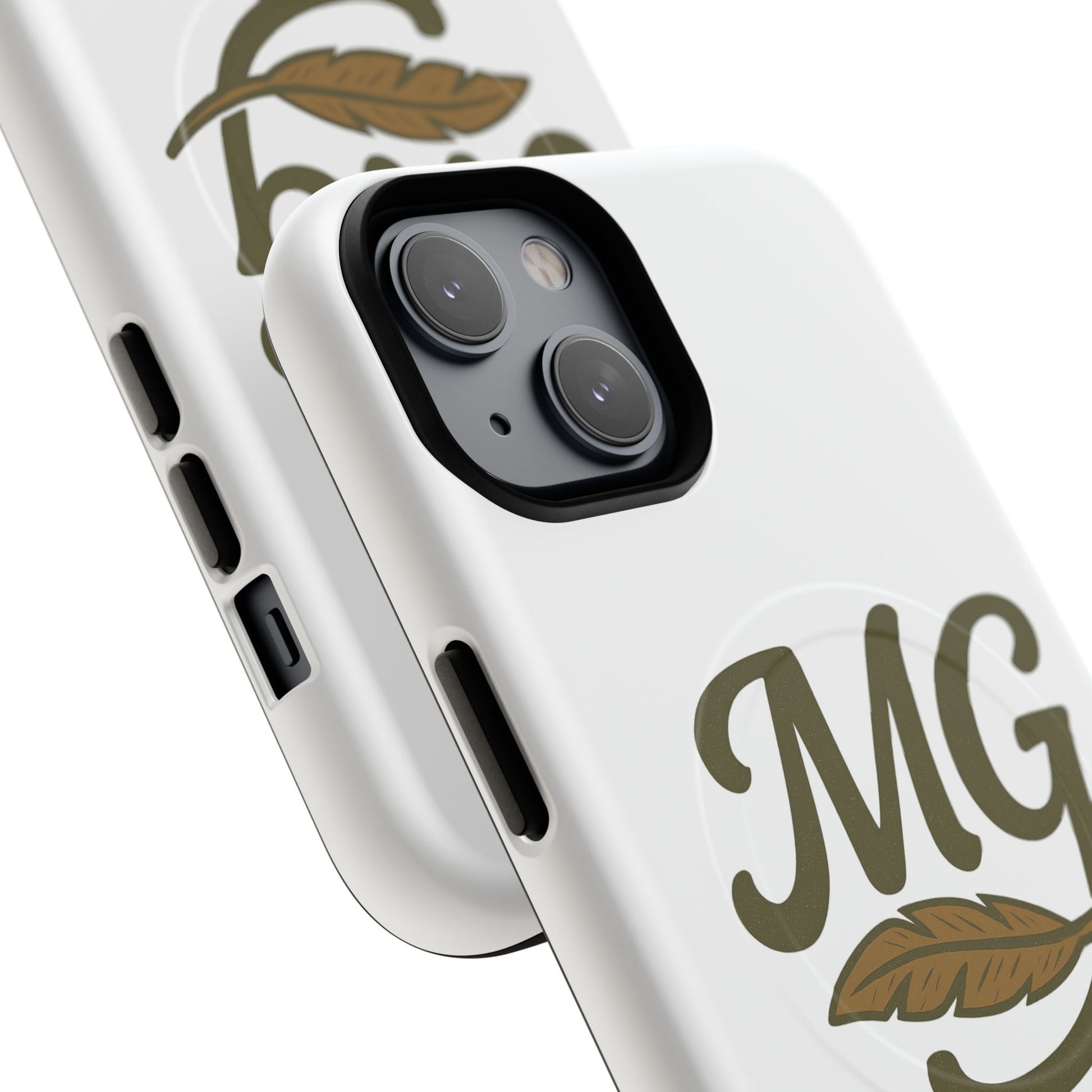 This slim, protective phone case brings a quiet, vintage charm to your everyday carry. The soft olive monogram and feather motif sit against a clean white backdrop, offering a subtle, refined look that ages well. Built as a dual-layer shell with a TPU silicone liner, it absorbs shocks while keeping edges crisp and ports accessible. The integrated magnetic module works with MagSafe-style accessories, so the case is as functional as it is stylish. Carry a little calm and character with your phone—whether you’re walking between meetings, settling in at a cafe, or slipping into a weekend bag.